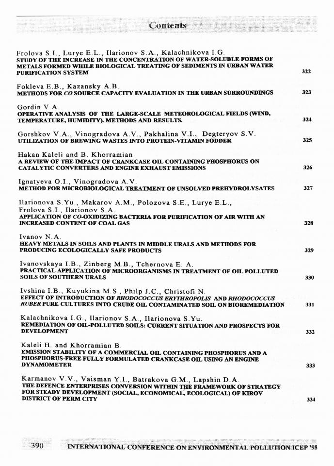 Titova A. V. Alteration in antibiotic sensitivity of some strains of Staphylococcus under formation of resistance to cadmium ions / A. V. Titova, L. M. Lemkina, V. P. Korobov // Международная конференция "Проблемы загрязнения окружающей среды-98", 12-18 сентября 1998 г., Москва, Россия = International Conference "Environmental Pollution ICEP`98". - Москва, Россия, 1998. - С. 275.