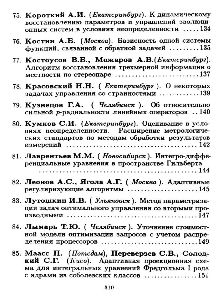 Сазанов А. А. Аппроксимативные свойства интерполяционных L-сплайнов, построенных по приближенному оператору / А. А. Сазанов // Алгоритмический анализ некорректных задач : тезисы докладов Всероссийской научной конференции, посвященной памяти В. К. Иванова, 2-6 февраля 1998 г. - Екатеринбург : УрГУ, 1998. - С. 222-223.