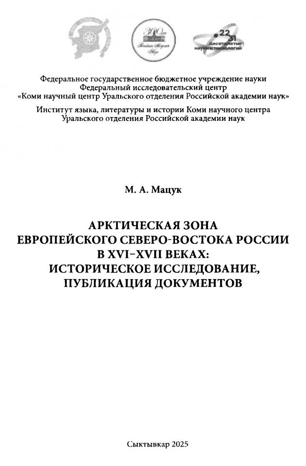 The author, relying on the identified archival documents and individual publications of his predecessors, for the first time considered in detail all the main issues of the history of the Arctic -one of the European Northeast of Russia (Pustozersk Volost / Pustozersk Uyezd) in the XVI-XVII centuries. A significant place in the work is devoted to the study of the history of public service and public administration in the region, the reconstruction of the corps of civil servants, including local government officials; state revenues received by the treasury. For the first time, a comprehensive study of the issues of population development and the evolution of the settlements of the territory, state policy in the field of prospecting for mineral deposits and other important aspects of the history of the Arctic zone of the European Northeast of Russia at the specified time was conducted. The appendix to the monograph contains documents related to the history of the Pustozersk Volost / Pustozersk Uyezd of the XVI-XVII centuries.