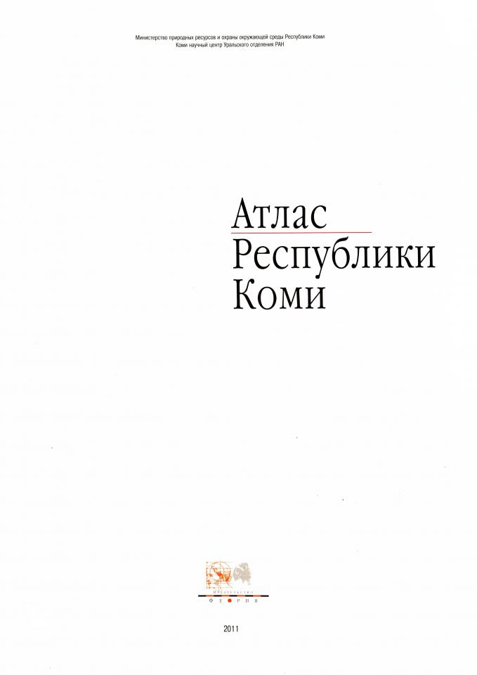 Атлас Республики Коми : окружающая среда, современное общество, история и культура, районы Республики Коми / Коми научный центр Уральского отделения РАН ; научный редактор Э. А. Савельева ; ответственный редактор Е. В. Корниенко [и др.]. - Москва : Феория, 2011. - 447 с.