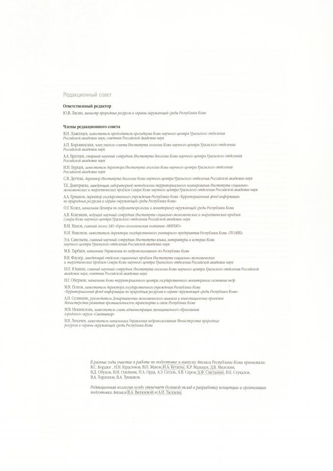 Атлас Республики Коми : окружающая среда, современное общество, история и культура, районы Республики Коми / Коми научный центр Уральского отделения РАН ; научный редактор Э. А. Савельева ; ответственный редактор Е. В. Корниенко [и др.]. - Москва : Феория, 2011. - 447 с.