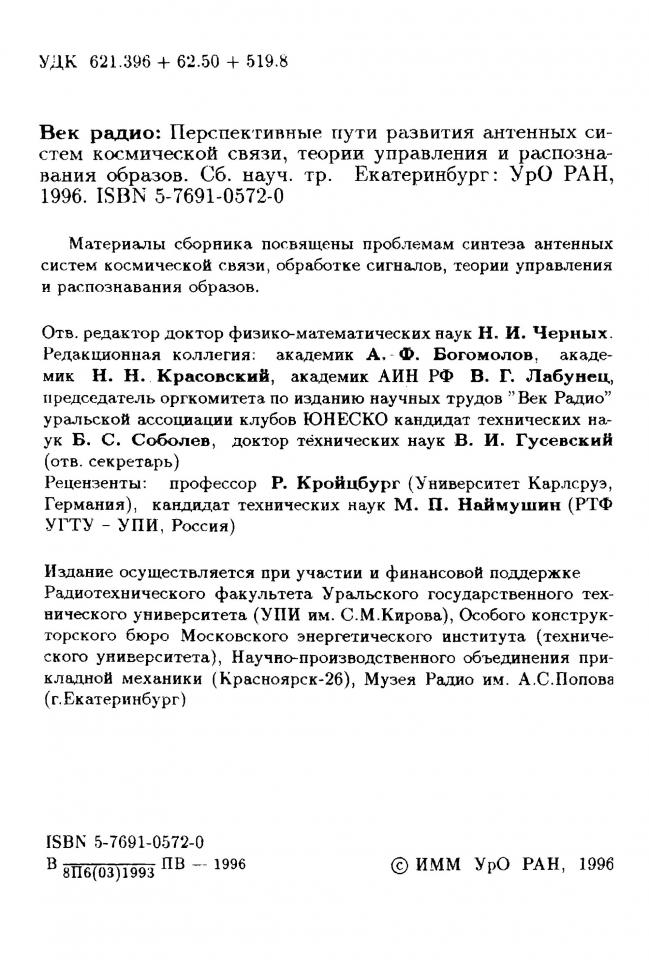 Быстрый метод фазового управления ГЗА / В. С. Балаганский, Н. А. Барабошкина, С. И. Новиков [и др.] // Век радио: перспективные пути развития антенных систем космической связи, теории управления и распознавания образов. - Екатеринбург, 1996. - С. 56-75.