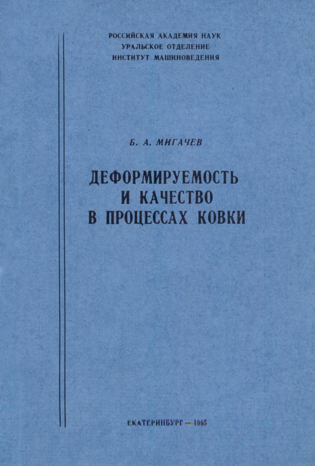 Мигачев Б. А. Деформируемость и качество в процессах ковки / Б. А. Мигачев ; ответственный редактор В. Л. Колмогоров ; Российская академия наук, Уральское отделение, Институт машиноведения. - Екатеринбург, 1995. - 150 с.