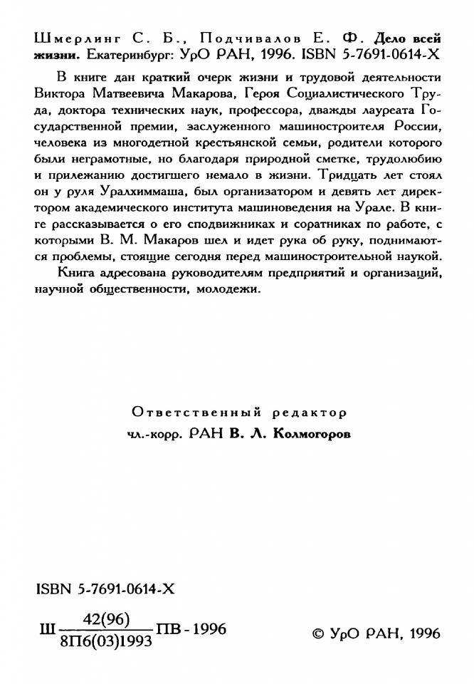 Шмерлинг С. Б. Дело всей жизни / С. Б. Шмерлинг, Е. Ф. Подчивалов ; ответственный редактор В. Л. Колмогоров ; Российская академия наук, Уральское отделение, Институт машиноведения. - Екатеринбург, 1996. - 157 с.