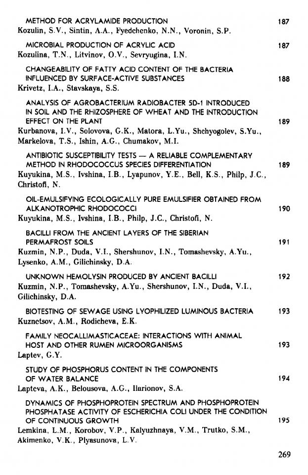 Effect of the hypoosmotic shock on putrescine and potassium exchange between a cell and the environment / L. Y. Nesterova, O. Y. Salakhetdinova, M. R. Pshenichnov, A. G. Tkachenko // Микробное разнообразие: состояние, стратегия сохранения, экологические проблемы : Международная конференция, 8-11 октября 1996 г., Пермь, Россия : тезисы докладов = "COMID'96": Microbial Diversity: current situation, conversation strategy and ecological aspects : International Conference, 8-11 October 1996, Perm, Russia : abstracts. - Пермь, 1996. - С. 207.