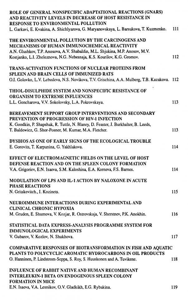 Endocrine-immune interlinks in women with menstrual cycle disorders / E. Sandakova, B. Bachmetyev, Ju. Shilov [et al.] // The 1995 International Co-Conference on Environmental Polution (ICEP’ 95) and Neuroimmuno Interactions and Environment (ICONE’ 95), 17-24 July, 1995, Saint Petersburg, Russia. - Saint Petersburg, Russia, 1995. - P. 166.