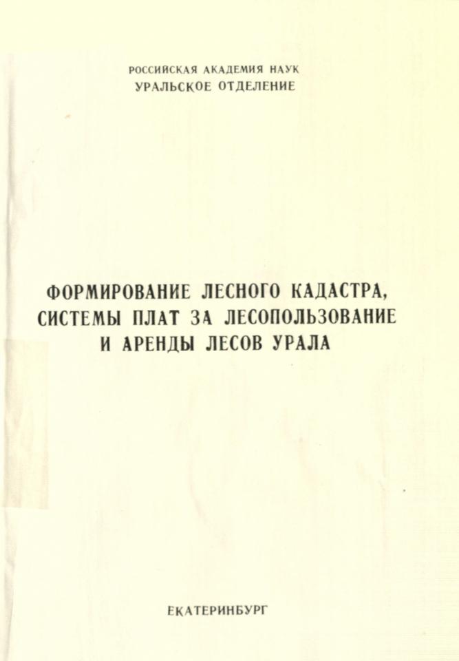 Формирование лесного кадастра, системы плат за лесопользование и аренды лесов Урала : научное издание / Российская академия наук, Уральское отделение, Институт леса ; ответственные редакторы: С. А. Мамаев, Р. П. Исаева. - Екатеринбург, 1996. - 132 с.