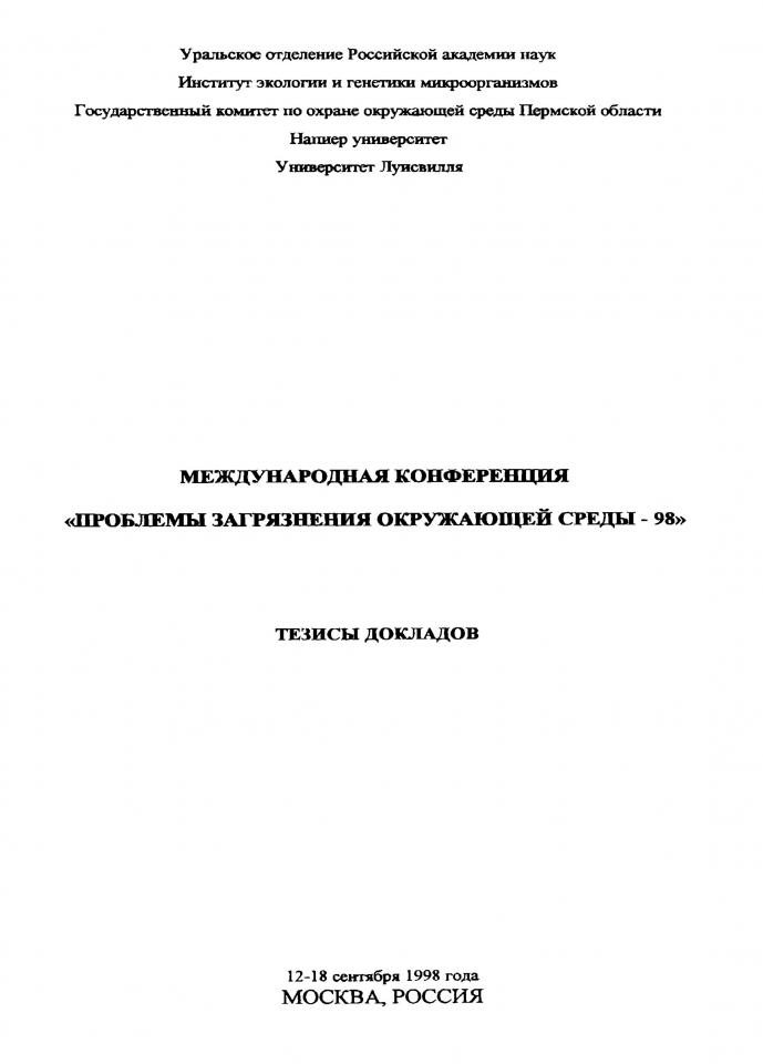 Оборин А. А. Геохимическая деятельность и микробное разнообразие подземной биосферы / А. А. Оборин, Л. М. Рубинштейн // Международная конференция "Проблемы загрязнения окружающей среды-98", 12-18 сентября 1998 г., Москва, Россия = International Conference "Environmental Pollution ICEP`98". - Москва, Россия, 1998. - С. 69.