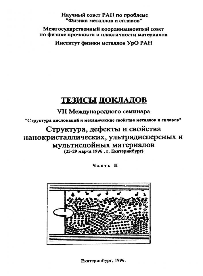 Шулика В. В. Индуцированная магнитная анизотропия и магнитные свойства нанокристаллического сплава Fe73,5Cu1Nb3Si13,5B9 / В. В. Шулика, А. П. Потапов // Структура, дефекты и свойства нанокристаллических, ультрадисперсионных и мультислойных материалов : тезисы докладов VII Международного семинара "Структура дислокаций и механические свойства металлов и сплавов" (25-29 марта 1996, г. Екатеринбург). - Екатеринбург, 1996. - Ч. II. - С. 153-154.