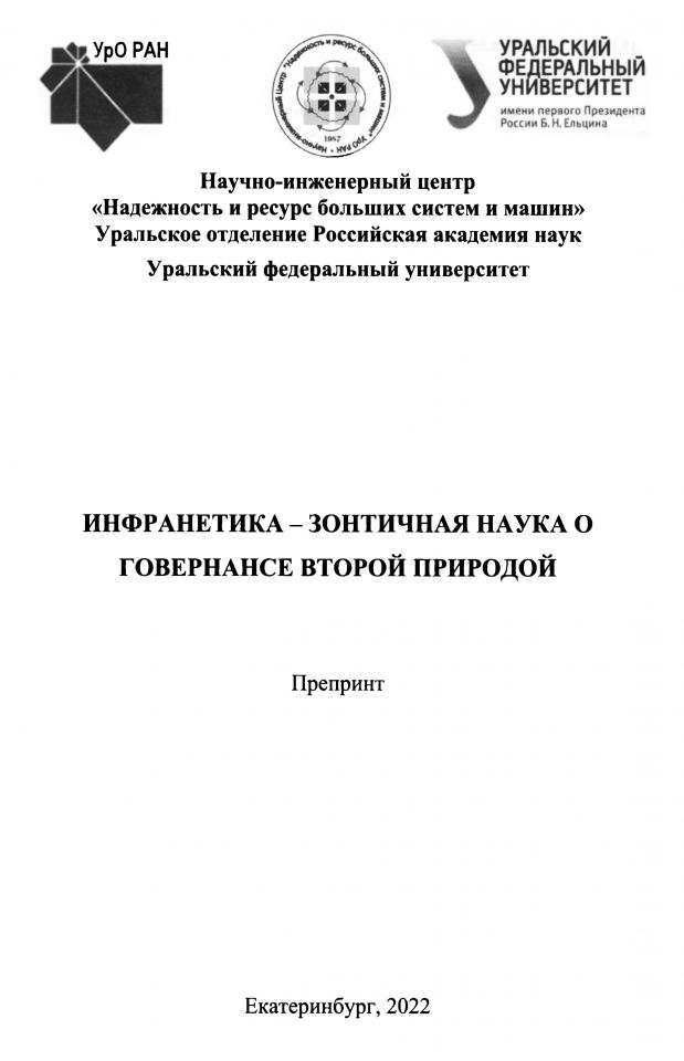 Тимашев С. А. Инфанетика-зонтичная наука о говернансе второй природой / С. А. Тимашев ; Научно-инженерный центр "Надежность и ресурс больших систем и машин", Уральское отделение Российской академии наук [и др.]. - Екатеринбург, 2022. - 80 с.