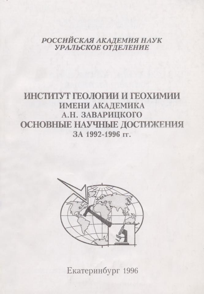 Институт геологии и геохимии им. акад. А. Н. Заварицкого: основные научные достижения за 1992-1996 гг. : сборник / Российская академия наук, Уральское отделение ; редакционная коллегия: В. А. Коротеев (ответственный редактор) [и др.]. - Екатеринбург, 1996. - 197 с.