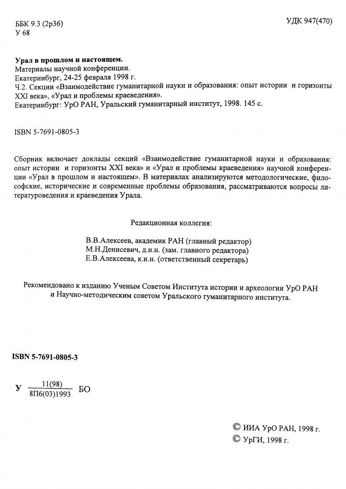 Фадеичева М. А. Интеграция академической науки и высшего образования: педагогический аспект / М. А. Фадеичева // Урал в прошлом и настоящем : материалы научной конференции, Екатеринбург, 24-25 февраля 1998 г. - Екатеринбург, 1998. - Ч. II : Секции. Взаимодействие гуманитарной науки и образования: опыт истории и горизонты ХХI века. Урал и проблемы краеведения. - С. 20-21.
