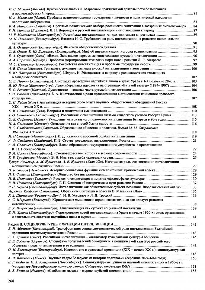 Широкова А. С. Интеллигенция как субъект социальной ностальгии / А. С. Широкова // Российская интеллигенция: критика исторического опыта : тезисы докладов Всероссийской конференции с международным участием, посвященной 80-летию сборника "Смена вех", 1-2 июня 2001 г. - Екатеринбург : Уральский государственный университет, 2001. - С. 139-140.
