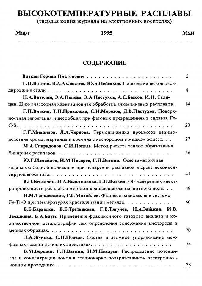 Дубинин Н. Э. Использование термодинамической теории возмущений для расчета термодинамических свойств бинарных металлических расплавов / Н. Э. Дубинин, Н. Л. Ватолин // Высокотемпературные расплавы : специальный выпуск = High-temperature metals : special issue. - Москва, 1995. - № 1 : март-май. - С. 91-97.
