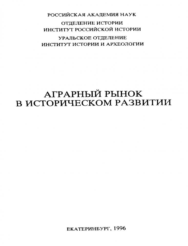 Миненко Н. А. Исторический опыт аграрного освоения Урала (конец XVI - начало XX в.) / Н. А. Миненко, И. В. Побережников // Аграрный рынок в историческом развитии. - Екатеринбург, 1996. - С. 6-18.