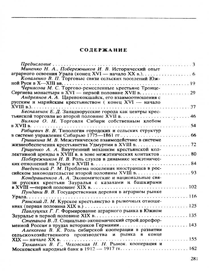Миненко Н. А. Исторический опыт аграрного освоения Урала (конец XVI - начало XX в.) / Н. А. Миненко, И. В. Побережников // Аграрный рынок в историческом развитии. - Екатеринбург, 1996. - С. 6-18.