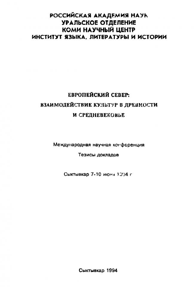 Жеребцов И. Л. Изменения климата и демографические процессы в Коми крае / И. Л. Жеребцов // Европейский Север: взаимодействие культур в древности и средневековье : тезисы докладов Международной научной конференции, Сыктывкар, 7-10 июня 1994 г. - Сыктывкар, 1994. - С. 33-35.