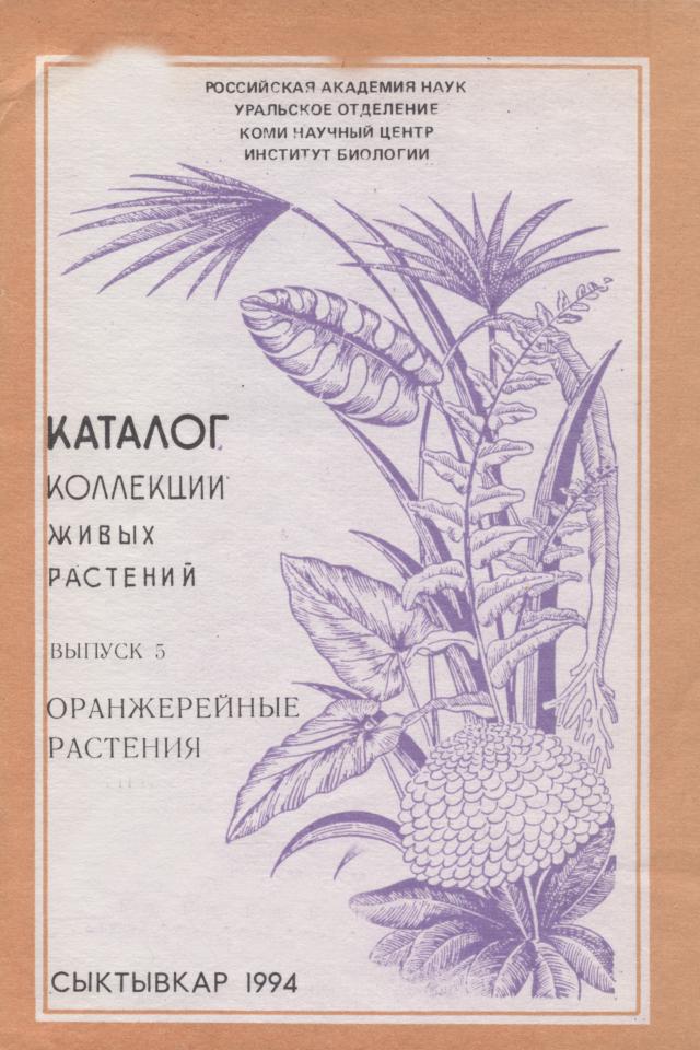 Каталог коллекции живых растений ботанического сада Института биологии Коми научного центра УрО Российской академии наук / Г. А. Волкова, С. В. Храмова, Н. А. Моторина, И. И. Полетаева ; Российская академия наук, Уральское отделение, Коми научный центр, Институт биологии. - Сыктывкар, 1994. - Вып. 5 : Оранжерейные растения. - 79 с.