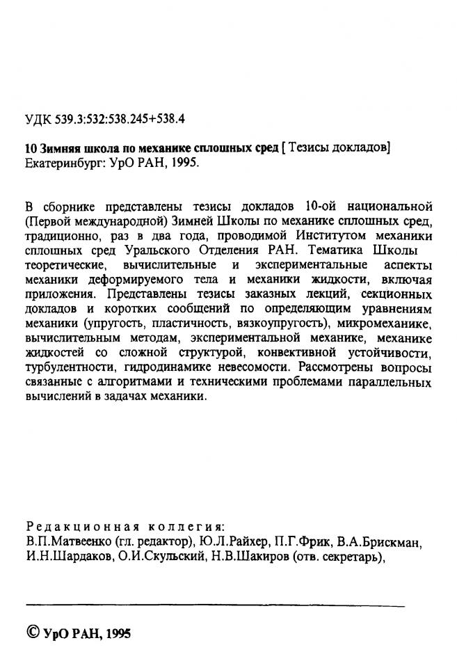 Вершинин С. В. Математическое моделирование процесса предотвращений преждевременного разрушения материала с помощью ионной имплантации / С. В. Вершинин // 10 Зимняя школа по механике сплошных сред. - Пермь, 1995. - С. 59.