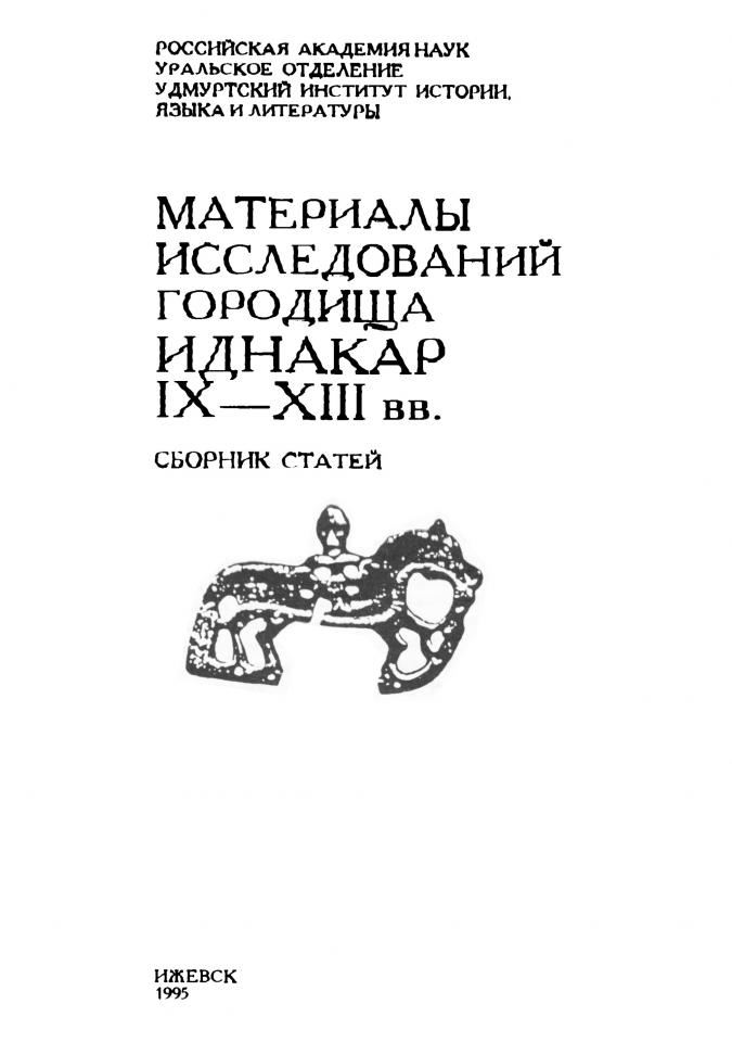 Материалы исследований городища Иднакар IX-XIII вв. : сборник статей / Российская академия наук, Уральское отделение, Удмуртский институт истории, языка и литературы ; ответственный редактор М. Г. Иванова. - Ижевск, 1995. - 189 с.