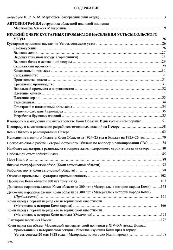Издание выходит к 150-летию со дня рождения политика, общественного деятеля и краеведа Алексея Макаровича Мартюшёва. В книге собраны опубликованные А. М. Мартюшёвым в первой трети XX в. работы, посвященные кустарным промыслам Коми края начала XX в., исторической демографии региона, экономике Коми автономии 1920-х гг. и ряду других аспектов истории Коми. Публикуются также рукописные заметки А. М. Мартюшёва 1942 г. общественно-политического характера, сохранившиеся в семейном архиве. Во вступительной статье освещены жизненный путь А. М. Мартюшёва и основные результаты его исследований, приведена библиография опубликованных трудов.