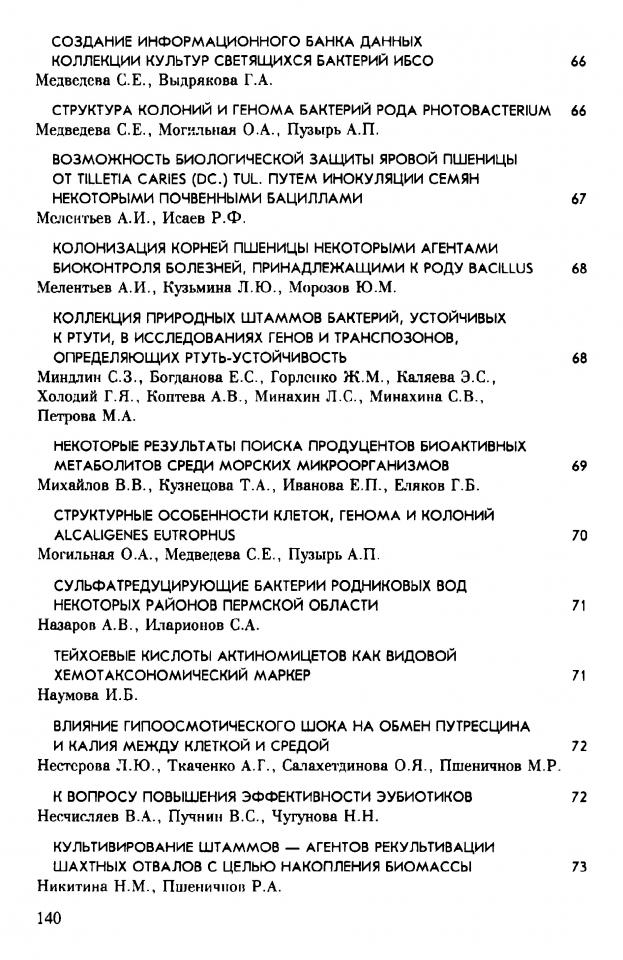 Микробное разнообразие: состояние, стратегия сохранения, экологические проблемы : Международная конференция, 8-11 октября 1996 г., Пермь, Россия : тезисы докладов = "COMID'96": Microbial Diversity: current situation, conversation strategy and ecological aspects : International Conference, 8-11 October 1996, Perm, Russia : abstracts / Российская академия наук, Уральское отделение, Институт экологии и генетики микроорганизмов [и др.] ; редакционная коллегия: И. Б. Ившина, В. А. Черешнев (ответственные редакторы) [и др.]. - Пермь, 1996. - 282 с.