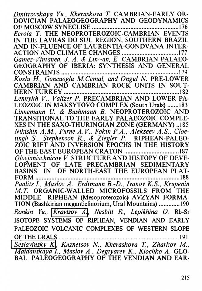 Червяковский С. Г. О характере и соотношении терригенного и вулканогенного осадконакопления в рифтогенных комплексах Приполярного Урала / С. Г. Червяковский // Палеогеография венда-раннего палеозоя (ПВРП - 96) : тезисы докладов Всероссийского совещания, 25 июля - 2 августа 1996 г. - Екатеринбург, 1996. - C. 159-161.