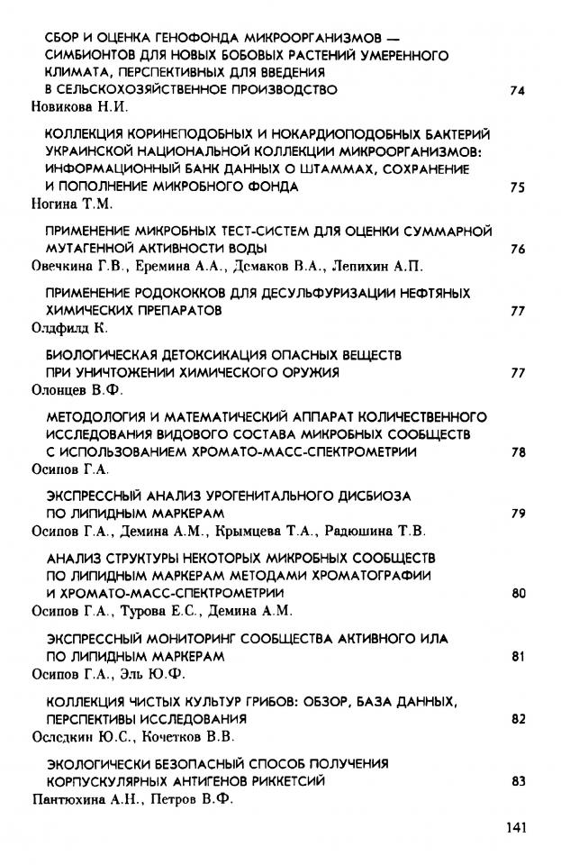 Обмен путресцина и калия между клеткой и средой как фактор адаптации Escherichia coli к стрессу аммонийного голодания / О. Я. Сялахетдинова, А. Г. Ткаченко, М. Р. Пшеничнов, Л. Ю. Нестерова // Микробное разнообразие: состояние, стратегия сохранения, экологические проблемы : Международная конференция, 8-11 октября 1996 г., Пермь, Россия : тезисы докладов = "COMID'96": Microbial Diversity: current situation, conversation strategy and ecological aspects : International Conference, 8-11 October 1996, Perm, Russia : abstracts. - Пермь, 1996. - С. 96-97.