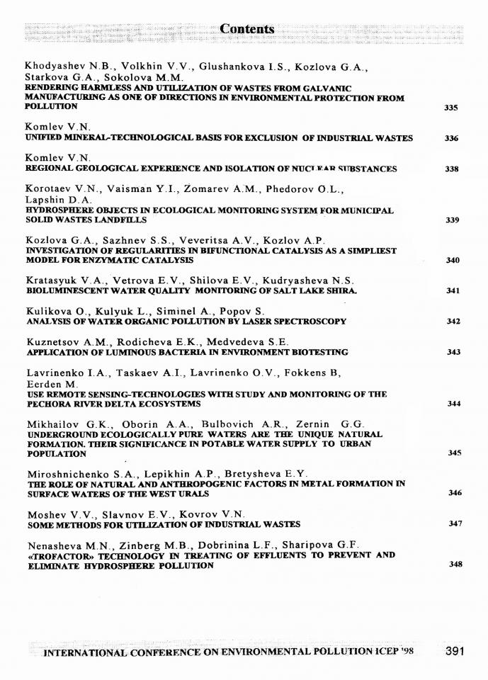 Надеин А. Ф. Особенности проведения процедуры ОВОС в промышленных городах / А. Ф. Надеин, С. Н. Тарханов, М. В. Доброскок // Международная конференция "Проблемы загрязнения окружающей среды-98", 12-18 сентября 1998 г., Москва, Россия = International Conference "Environmental Pollution ICEP`98". - Москва, Россия, 1998. - С. 23.