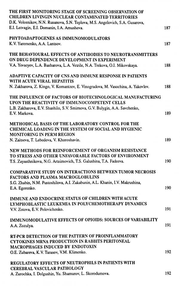 Phagocytic activity alteration of neutrophils under the influence of peptide fraction, isolated from red californian worms / L. Simakova, L. Lemkina, L. Kassin [et al.] // The 1995 International Co-Conference on Environmental Polution (ICEP’ 95) and Neuroimmuno Interactions and Environment (ICONE’ 95), 17-24 July, 1995, Saint Petersburg, Russia. - Saint Petersburg, Russia, 1995. - P. 176.