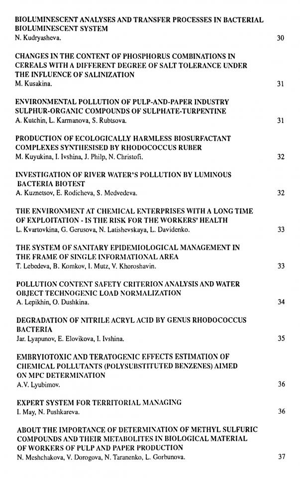 Taranova L. Plasmid localization of the process of ionogenic surfactants destruction / L. Taranova, N. Mikhailuk, V. Grishenkov // The 1995 International Co-Conference on Environmental Polution (ICEP’ 95) and Neuroimmuno Interactions and Environment (ICONE’ 95), 17-24 July, 1995, Saint Petersburg, Russia. - Saint Petersburg, Russia, 1995. - P. 66.