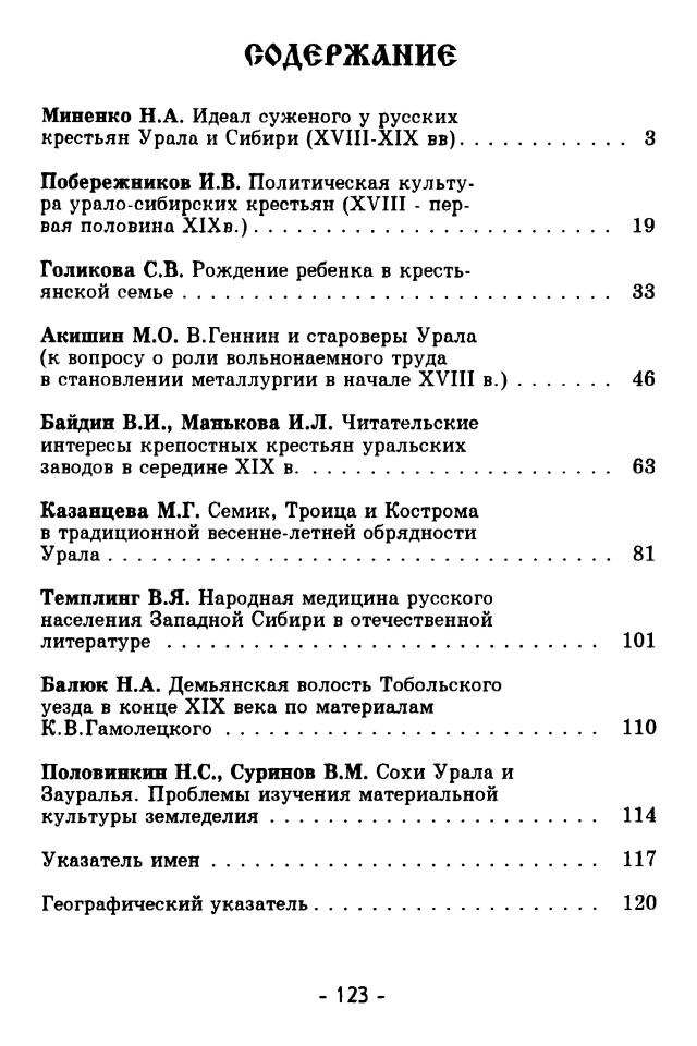 Политическая культура урало-сибирских крестьян (XVIII - первая половина XIX вв.) / И. В. Побережников // Традиционная культура русских крестьян Сибири и Урала. - Тюмень : РУТРА, 1995. - С. - 19-32.