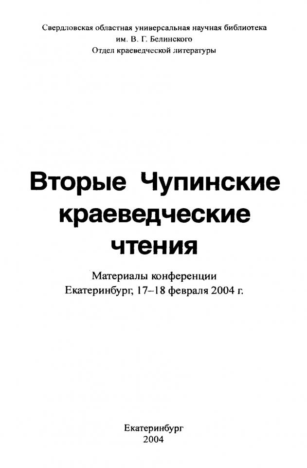 Апкаримова Е. Ю. Православные сообщества в городах Среднего Урала во второй половине XIX - начале XX вв. / Е. Ю. Апкаримова // Вторые Чупинские краеведческие чтения : материалы конференции, Екатеринбург, 17-18 февраля 2004 г. - Екатеринбург, 2004. - С. 114-126.