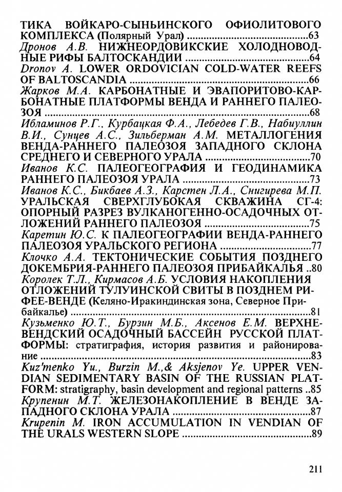 Lennykh V. Precambrian and Lower Pa-Leozoic in Maksytovo Complex (South Urals) / V. Lennykh, P. Valizer // Палеогеография венда-раннего палеозоя (ПВРП - 96) : тезисы докладов Всероссийского совещания, 25 июля - 2 августа 1996 г. - Екатеринбург, 1996. - C. 183-185.