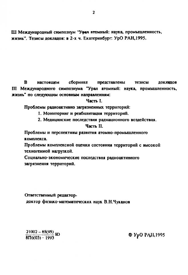 Rasina L. N. Preparations of radioprotective and curative effect on chronic irradiation conditions / L. N. Rasina, O. N. Chupakhin, S. B. Vladimirskaya // III Международный симпозиум "Урал атомный: наука, промышленность, жизнь", 29 мая-2 июня 1995 года, г. Заречный : тезисы докладов на русском и английском языках: в 2 частях. - Екатеринбург, 1995. - Ч. 1 : Проблемы радиоактивно загрязненных территорий. - С. 177-178.