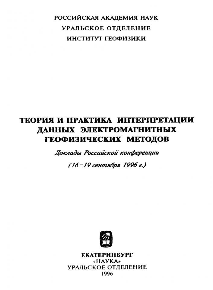 Кутин В. А. Приемы визуализации трехмерных геоэлектрических полей / В. А. Кутин, В. П. Колесников // Теория и практика интерпретации данных электромагнитных геофизических методов : доклады Российской конференции (16-19 сентября 1996 г., Екатеринбург). - Екатеринбург : Наука, Уральское отделение, 1996. - С. 77-79.
