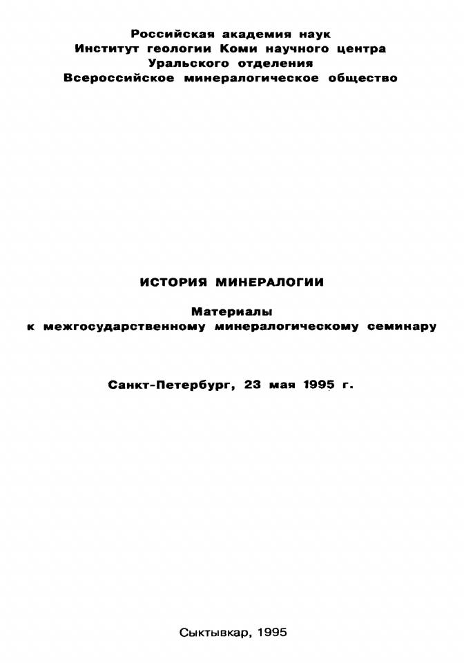 Попова В. И. Проблема секториальности состава кристаллов минералов / В. И. Попова, В. А. Попов // История минералогии : материалы к межгосударственному минералогическому семинару, Санкт-Петербург, 23 мая 1995 г., Сыктывкар. - Сыктывкар : Геопринт, 1995. - С. 41-42.