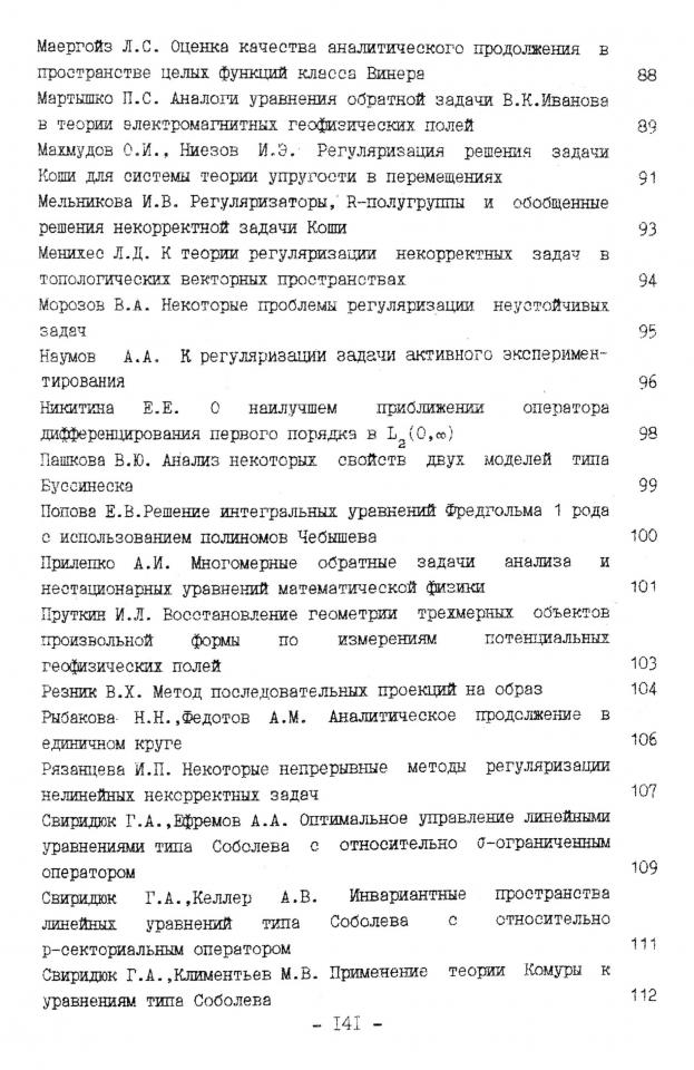 Мельникова И. В. Регуляризаторы, R-полугруппы и обобщенные решения некорректной задачи Коши / И. В. Мельникова // Алгоритмический и числительный анализ некорректных задач : тезисы докладов Всероссийской научной конференции, посвященной памяти В. К. Иванова, 27 февраля - 3 марта 1995 г., г. Екатеринбург. - Екатеринбург : Уральский государственный университет, 1995. - С. 93.