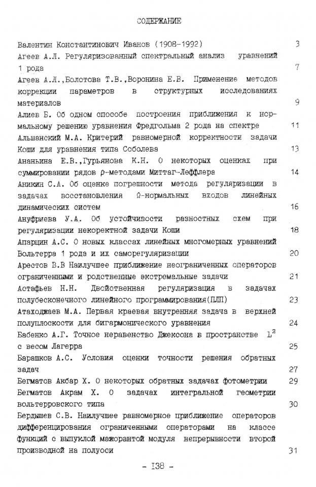 Агеев А. Л. Регуляризованный спектральный анализ уравнений 1 рода / А. Л. Агеев // Алгоритмический и числительный анализ некорректных задач : тезисы докладов Всероссийской научной конференции, посвященной памяти В. К. Иванова, 27 февраля - 3 марта 1995 г., г. Екатеринбург. - Екатеринбург : Уральский государственный университет, 1995. - С. 7-8.