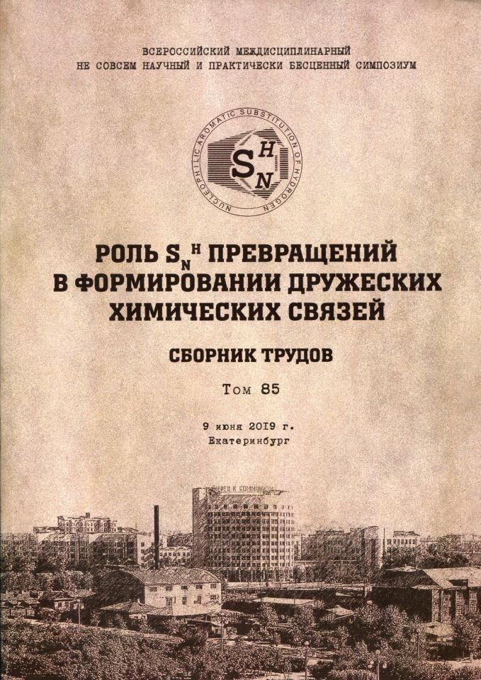 Роль SNH превращений в формировании дружеских химических связей : Всероссийский междисциплинарный не совсем научный и практически бесценный симпозиум / Екатеринбург, 2019. - Т. 85 : Сборник тезисов юбилейного симпозиума, посвященного 85-летию академика РАН Чупахина Олега Николаевича, 9 июня 2019 г., Екатеринбург. - 148 с.