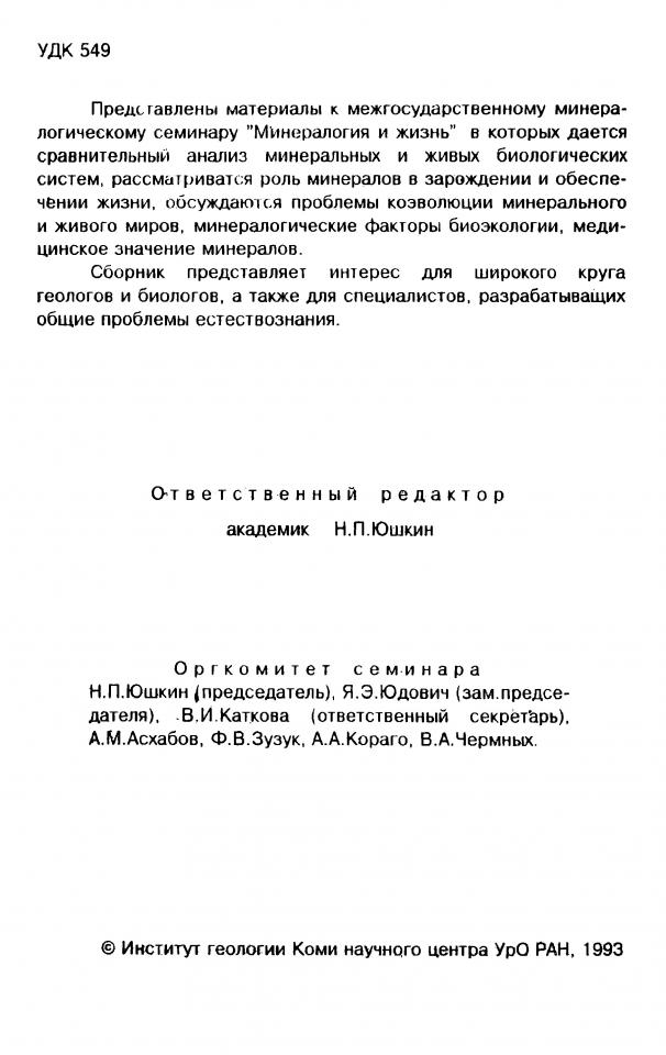 Каткова В. И. Рост кальцита бактериального происхождения в силикагеле / В. И. Каткова, В. И. Ракин, Л. А. Янулова // Минералогия и жизнь : материалы к межгосударственному минералогическому семинару. - Сыктывкар, 1993. - С. 55-56.