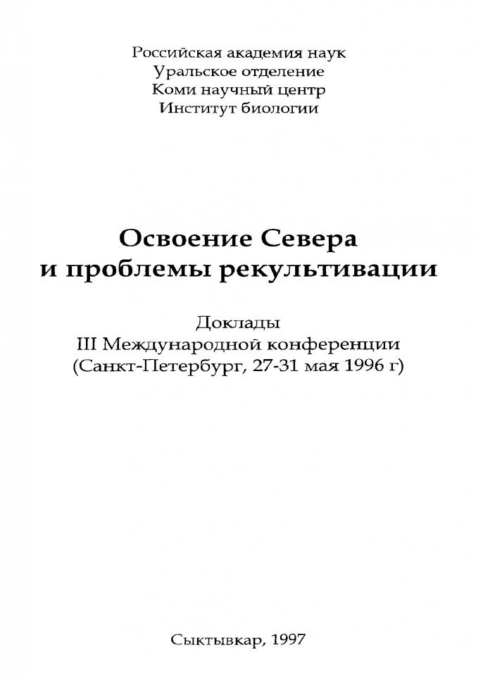 Ilarionov S. A. Self-purification of oil-polluted soils and their recultivation / S. A. Ilarionov // Освоение Севера и проблемы рекультивации : доклады III Международной конференции (Санкт-Петербург, 27-31 мая 1996 г.). - Сыктывкар, 1997. - С. 337-340.