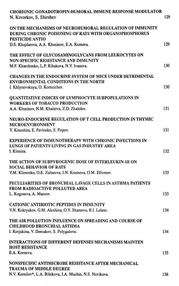 Kevorkov N. Сhorionic gonadotropin-humoral immune response modulator / N. Kevorkov, S. Shirshev // The 1995 International Co-Conference on Environmental Polution (ICEP’ 95) and Neuroimmuno Interactions and Environment (ICONE’ 95), 17-24 July, 1995, Saint Petersburg, Russia. - Saint Petersburg, Russia, 1995. - P. 129.