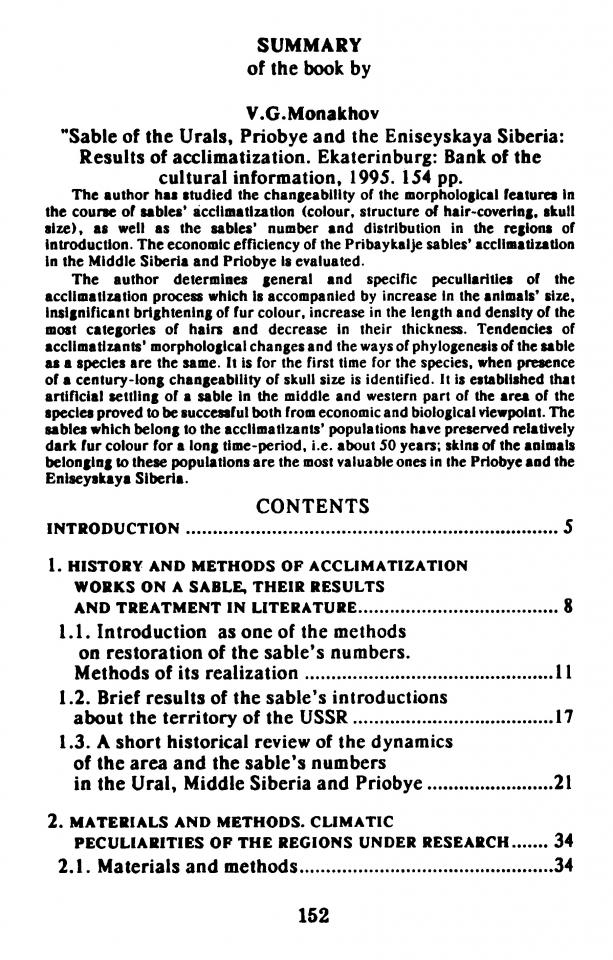 Монахов В. Г. Соболь Урала, Приобья и Енисейской Сибири : Результаты реакклиматизации / В. Г. Монахов ; Российская академия наук, Уральское отделение, Институт экологии растений и животных. - Екатеринбург : Банк культурной информации, 1995. - 153 с.