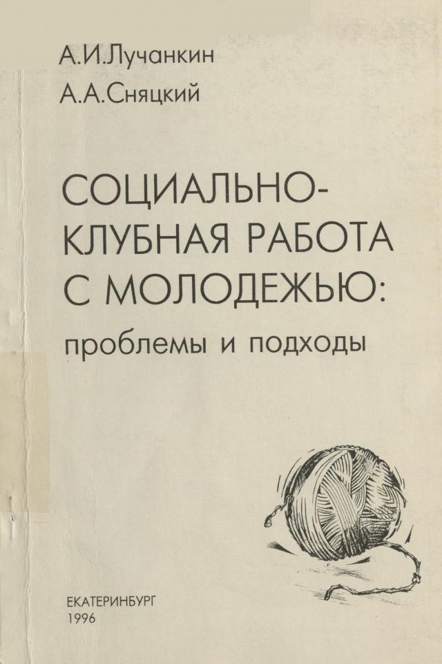 Лучанкин А. И. Социально-клубная работа с молодежью: проблемы и подходы / А. И. Лучанкин, А. А. Сняцкий ; Российская академия наук, Уральское отделение, Институт философии и права [и др.]. - Екатеринбург, 1996. - 265 с.