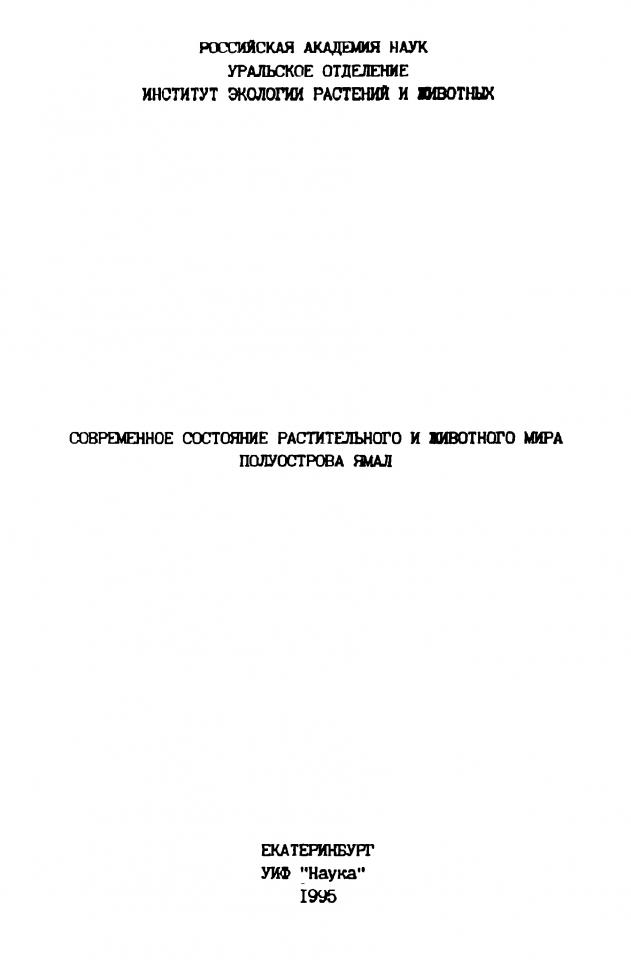 Современное состояние растительного и животного мира полуострова Ямал / Российская академия наук, Уральское отделение, Институт экологии растений и животных ; ответственный редактор В. С. Балахонов. - Екатеринбург : Наука, 1995. - 215 с.