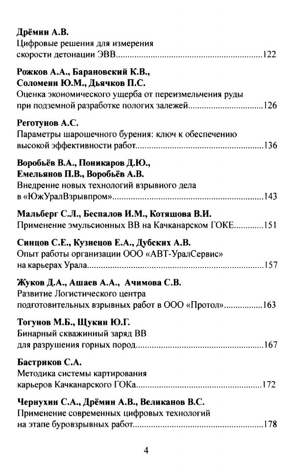 Современные технологии производства взрывных работ и взрывчатых веществ на горнодобывающих предприятиях Урала. Итоги конференции на Качканарском ГОКе / Г. П. Берсенев, В. А. Кутуев, С. Л. Мальберг, И. М. Беспалов // Технология и безопасность взрывных работ : материалы научно-производственных конференций по взрывным работам-2024. - Екатеринбург : Печатное поле, 2025. - С. 25-31.