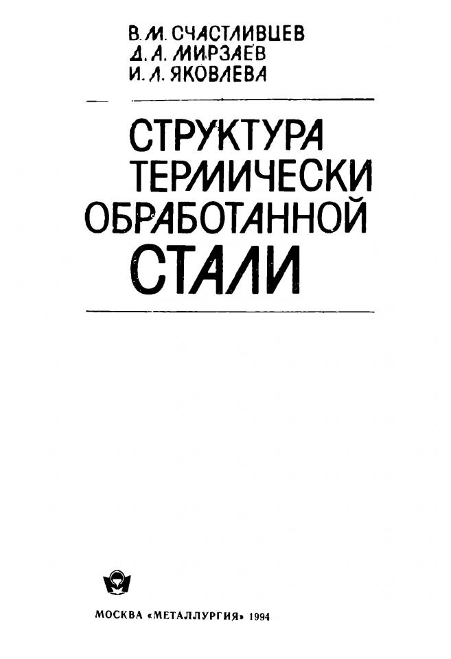 Счастливцев В. М. Структура термически обработанной стали : монография / В. М. Счастливцев, Д. А. Мирзаев, И. Л. Яковлева. - Москва : Металлургия, 1994. - 288 с.
