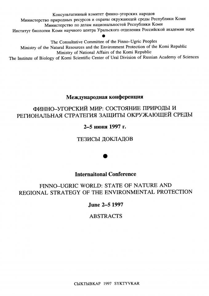 Degteva S. V. The system of nature protected areas (NPA) of the Komi Republic: problems and perspectives / S. V. Degteva // Финно-угорский мир: состояние природы и региональная стратегия защиты окружающей среды : Международная конференция, Сыктывкар, 2-5 июня 1997 г. : тезисы докладов = Finno-ugric world: state of nature and regional strategy of the environmental protection : International Conference, Syktyvkar, Komi Republic, Russia, June 2-5, 1997 : abctract. - Сыктывкар, 1997. - С. 54.