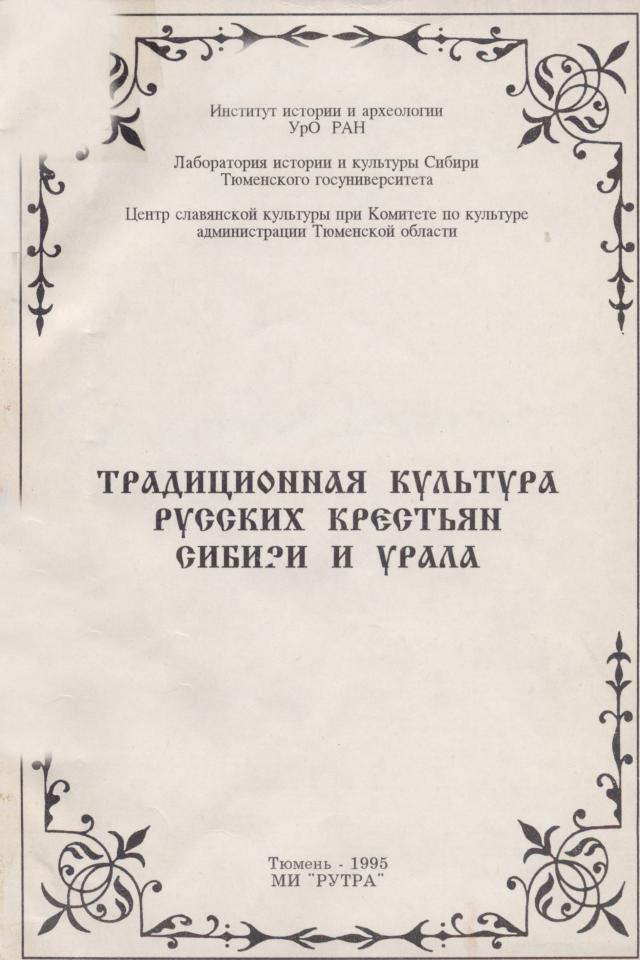 Традиционная культура русских крестьян Сибири и Урала : сборник научных статей / Институт истории и археологии УрО РАН [и др.] ; редакционная коллегия: Н. А. Миненко (главный редактор) [и др.]. - Тюмень : РУТРА, 1995. - 123 с.